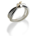 【天使の卵】を支える2本のシャープなアーチが印象的なピンキーリング。 少し斜めに傾けた天使の卵がラインの躍動感を際立てています。