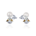 シルバー / K10イエローゴールド(羽部分) 淡水パール(4.0mm) ハートカットキュービックジルコニア(3.0mm) K10ポスト/ K10シリコンキャッチ |