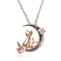 三日月に座って夜空を眺める大人可愛いネコのネックレス。