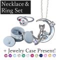 ◆選べる誕生石◆ネックレス&リングセット◆Crescent Moon 三日月に座るネコ Mirai-Tenshi 【MIP1165WEB_SET02】|可愛いアクセサリー 天使の卵 通販本店