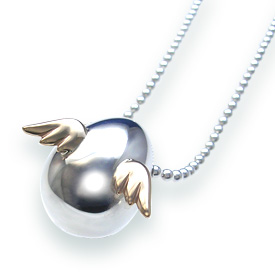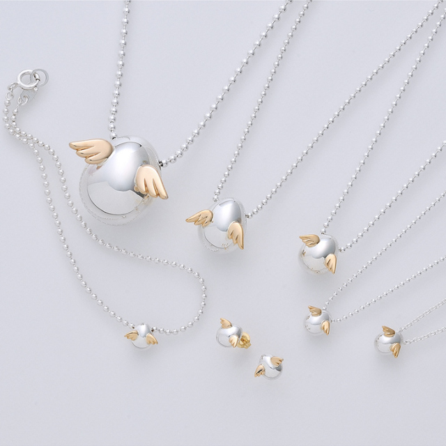 美しいフォルムのシルバー素材の卵に、18金で作 られた羽がキラリと輝く高級感あるデザイン。