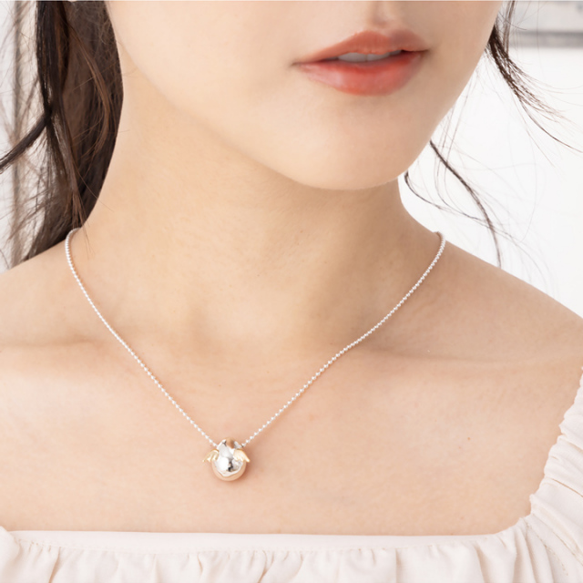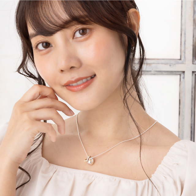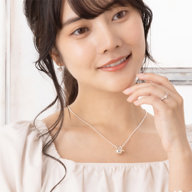 デコルテでコロンと揺れる天使の 卵が可憐な印象を与えてくれます。