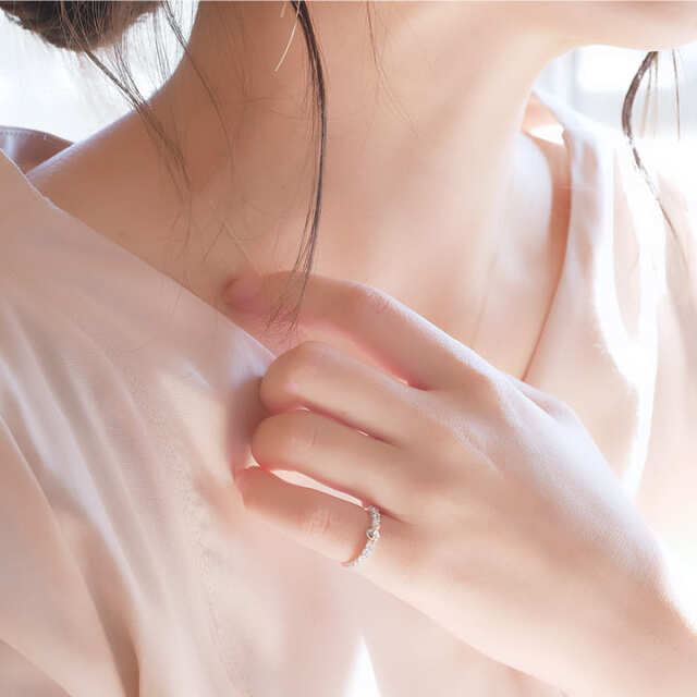 天使の卵を中心に、合計0.23カラットのキュービックジルコニアが連なるハーフエタニティリング。