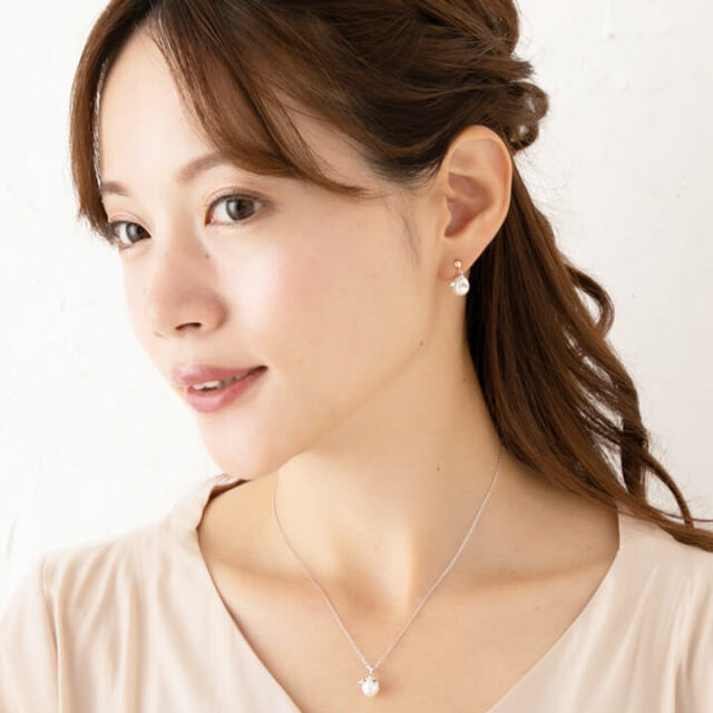 コーディネートを選ばないシンプルな1粒のパールピアス。