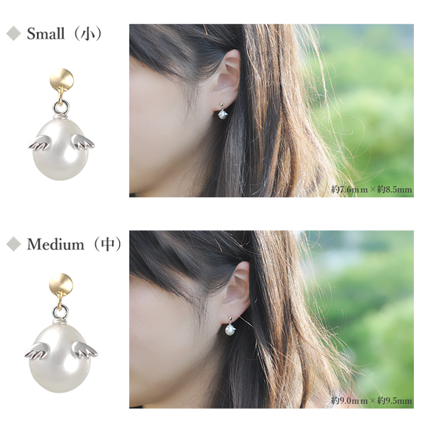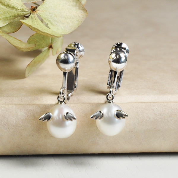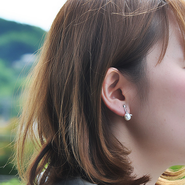 コーディネートを選ばないシンプルな1粒のパールイヤリング。 コロンと愛らしい「天使の卵」が程よいアクセントになっています。 天然パールの柔かな輝きが肌になじみ優しい雰囲気に。