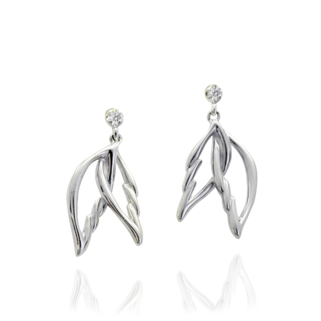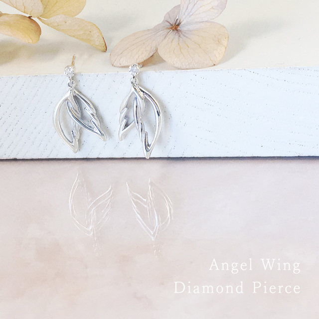 輝くダイヤモンドに揺れる 重なる羽のピアス。