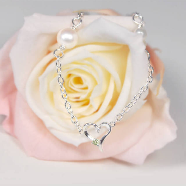 華奢なハートモチーフにはダイヤモンドがキラリと光り、華やかさをプラスします。