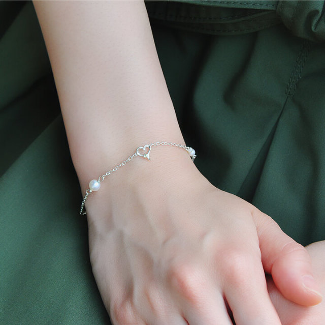 天然パールを贅沢に散りばめたブレスレットは、上品な手元を演出。