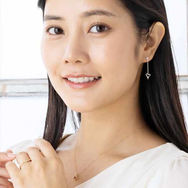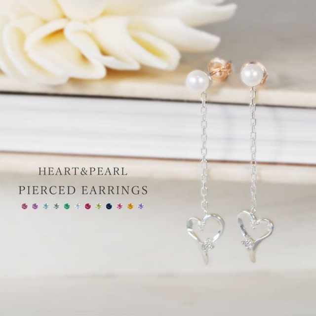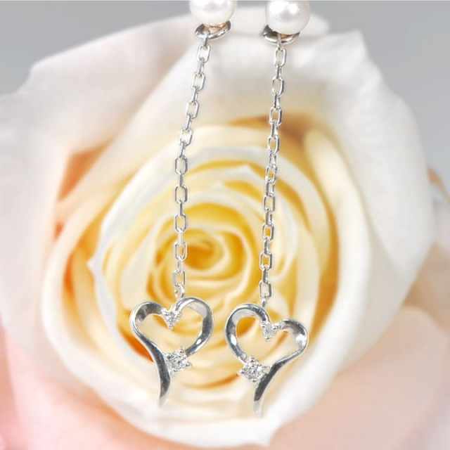 華奢なハートモチーフは揺れるたびにダイヤモンドと誕生石がキラリと光り、