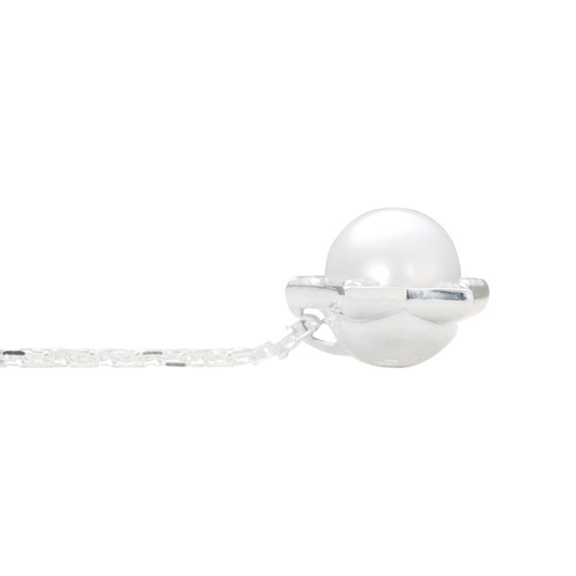 眩い煌めきはパールの柔らかな光と相まって、胸元に華やかさをプラスします。