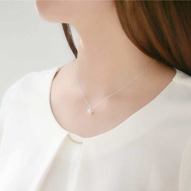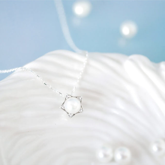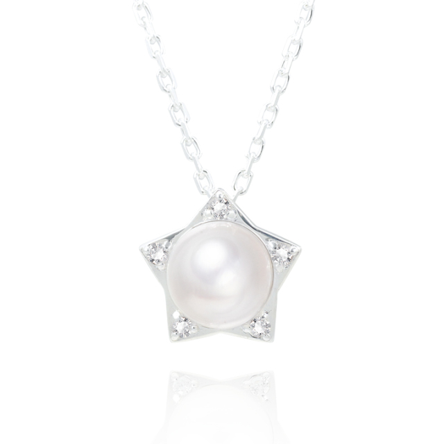 パールを囲うキュービックジルコニアを贅沢に5石配置し、スターシルエットに。