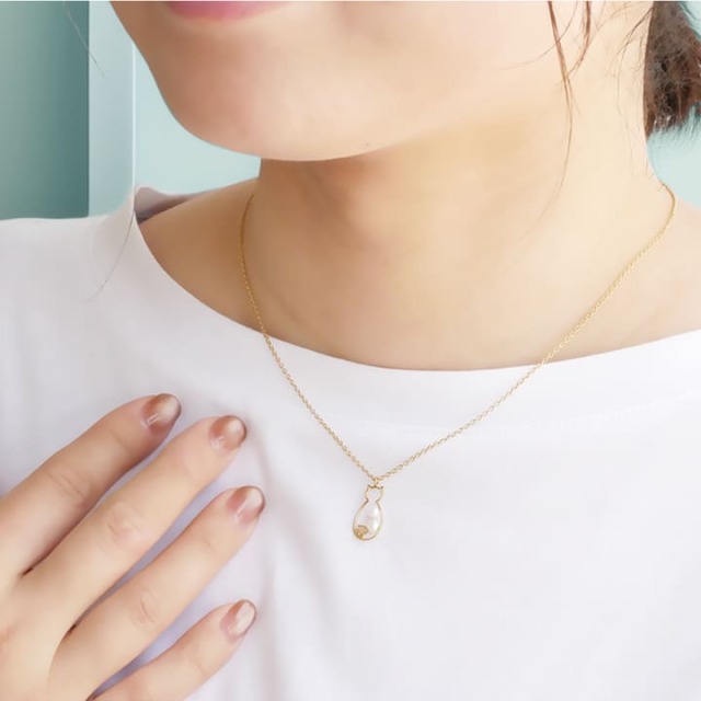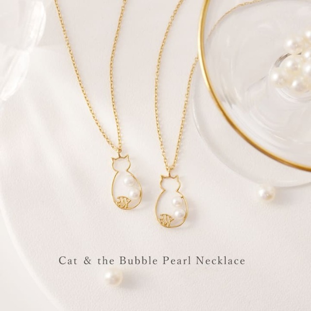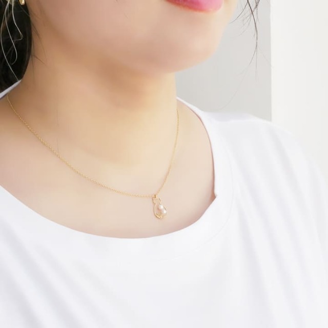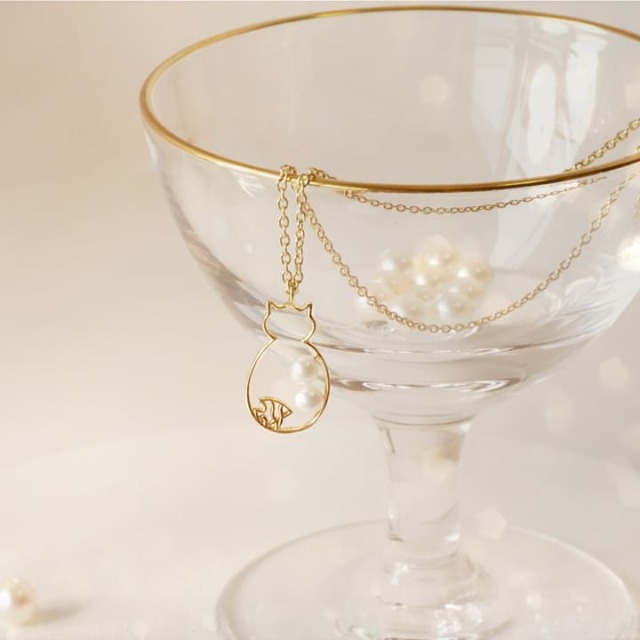 華奢なラインで描くことで、ユニークさと上品さを併せ持つ猫のネックレス。