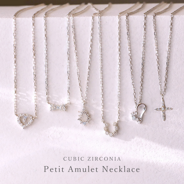 アミュレットとはフランス語で”お守り”と言う意味。 モチーフは、2種類のハート、リボン、ホースシュー、ドロップ、クロスの6種類。 それぞれ「想い」や「願い」が込められています。 毎日身につけられる華奢でシンプルなデザインは普段使いにぴったりです。