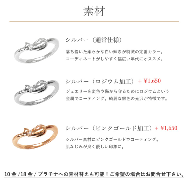 アレルギーの原因になりやすいニッケルは使用していません。大切な贈り物や記念にお選び頂くジュエリーだからこそ、丁寧で妥協の無いものづくりを続けています。