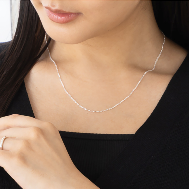 最もスタンダードなアズキチェーンにカットを施すことでキラキラと輝き、軽やかな印象のチェーンに。