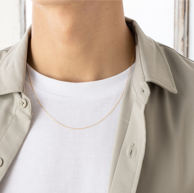 最もスタンダードなアズキチェーンにカットを施すことでキラキラと輝き、軽やかな印象のチェーンに。