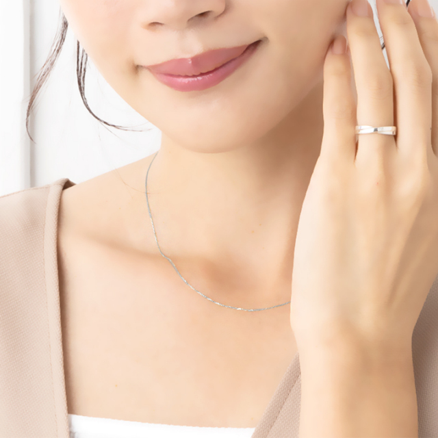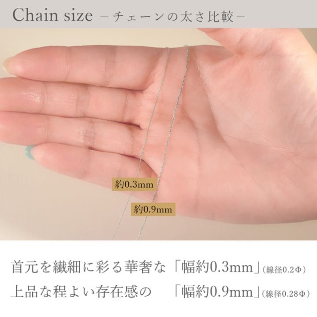最もスタンダードなアズキチェーンにカットを施すことでキラキラと輝き、軽やかな印象のチェーンに。