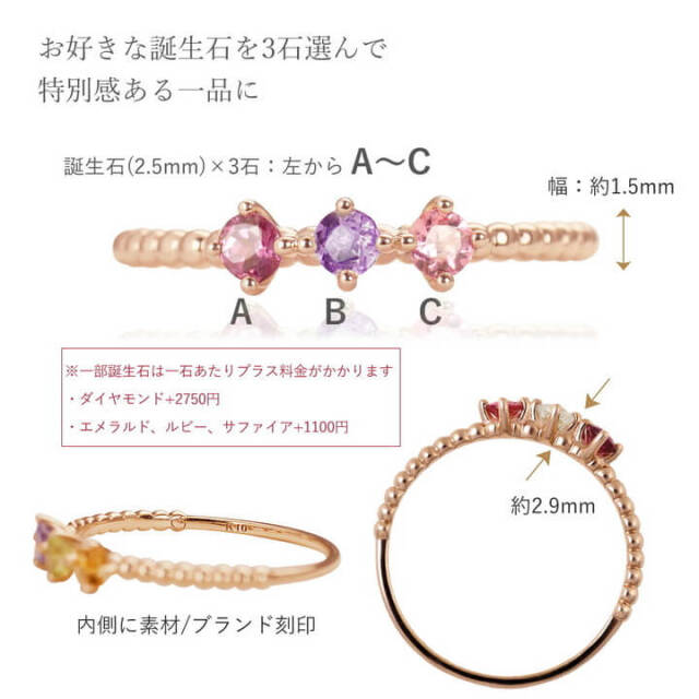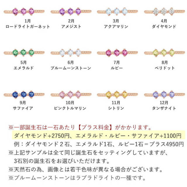 自分の誕生石はもちろん、ご家族や兄弟やペットの誕生石を入れてファミリーリングとして楽しんだり、大切な人の誕生石を身に着けてそばに感じてみてはいかがですか。