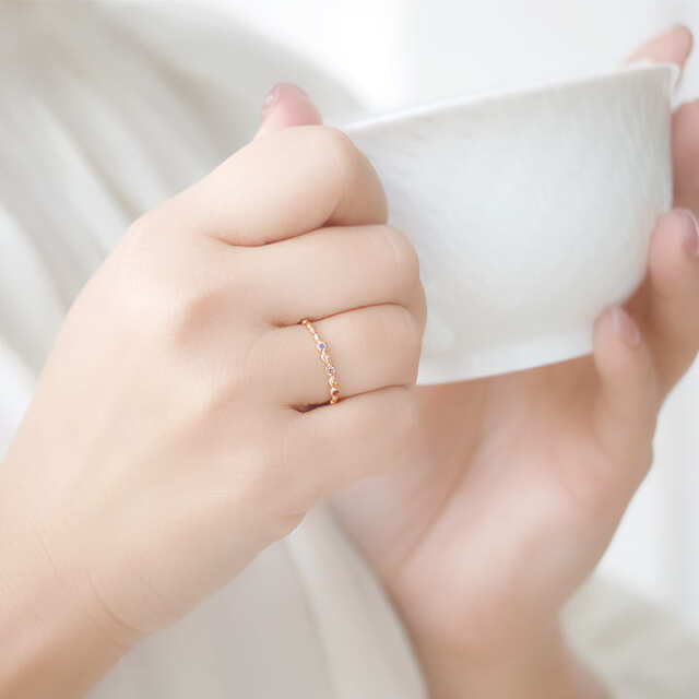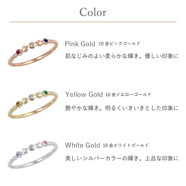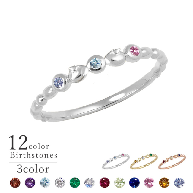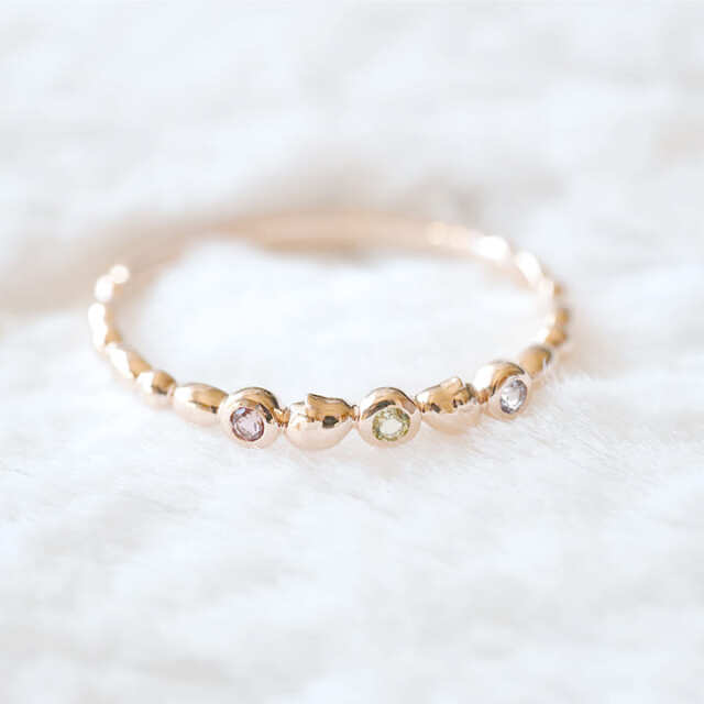 3石選べる誕生石。繊細な粒のアームがアンティーク感を演出。