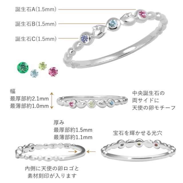 中央にお子様と両サイドにご両親、第一子と第二子と第三子など家族構成に合わせたり、お好きなカラーや宝石の意味から選ぶのも◎