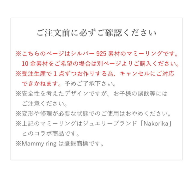 | サイズ直し | 不可 ※こちらのリングはデザイン上、サイズのお直しができかねます。 サイズをご確認の上ご注文頂けますようにお願い致します。 |