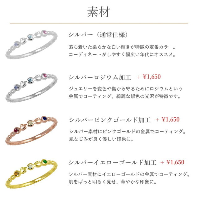 シルバー or ロジウム加工 or ピンクゴールド加工 or イエローゴールド加工 |