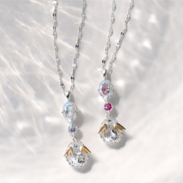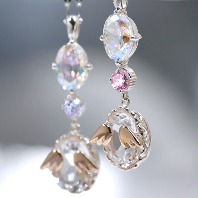 そして上品に揺れる、ゴールドの羽に包まれたホワイトクォーツの天使の卵。